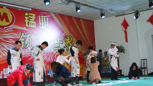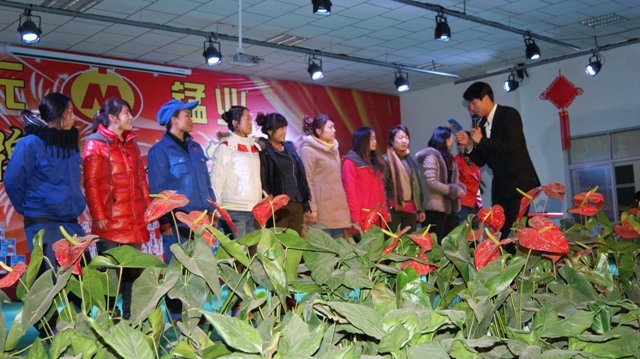 新员工是一个企业新鲜血液的补充。晚会中,他们和女工一起加入到晚会的互动节目当中,展示了自己的风采,将晚会推上了另一个高潮。女员工和新工共同度过了一个愉快的三八节。