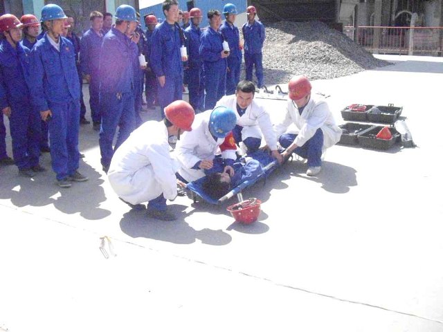 张武生在演练现场指导说:安全演练的目的以预防为主,以应对生产过程中的突发事件,能够做到及时、高效,急救过程中能够有序,不慌乱、不盲目,不造成二次事故。希望各车间能够互相借鉴成功之处,作细作好每一个环节。