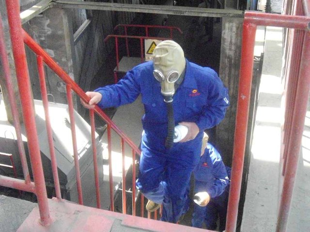 张立明副经理多次到演练现场观看演练过程,并进行技术指导,指出演练措施要符合规范,要正确使用、佩戴防护救治工具,要时刻绷紧安全的弦,唱好安全的曲,在安全的前提之下搞好生产。