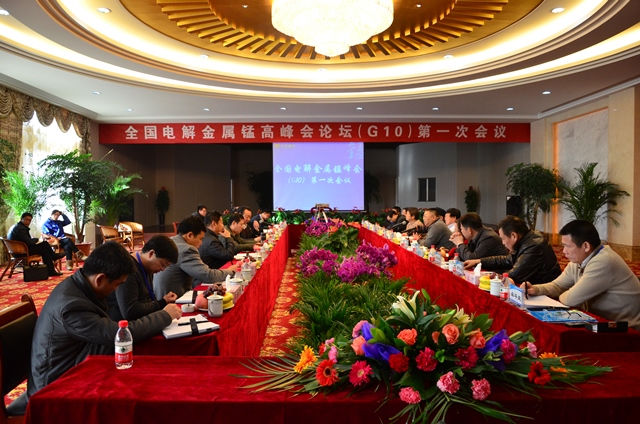 2012年12月1日上午,全国电解金属锰高峰论坛(G10)第一次会议在宁夏回族自治区天元锰业集团公司召开,参加本次会议的有电解金属锰高峰论坛会会长谭柱中、秘书长曾湘波、全国锰业技术委员会主任谭立群女士以及来自中信大锰集团、贵州三和锰业集团、秀山武陵锰业公司等十家电解金属锰公司的董事长。本次会议由天元锰业集团公司主办,我公司董事长贾天将、总经理焦双参加了本次会议。