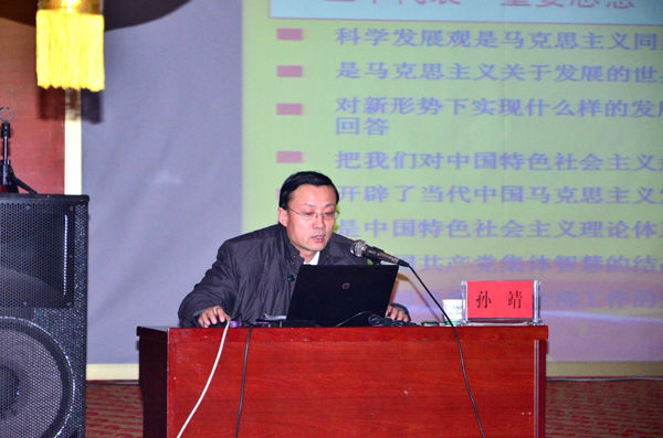 下午四时整,报告会准时开始。孙靖副部长首先介绍了十八大报告的起草、时代背景、重大意义等,重点阐述了十八大精神的五个主要方面,对报告的新亮点、新理论、新思想、新观点进行了剖析和讲解,加深了与会人员对十八大报告的理解和体会。孙靖副部长还强调与会人员要充分认识学习贯彻十八大精神的重要意义,倡导各企业应加强学习的自觉性、主动性,紧密联系本部门、本单位工作实际,把十八大精神变成凝聚人心、鼓舞士气、加快振兴区域经济的强大动力;要学以致用,真正把十八大精神融会贯通,运用到日常工作中去。