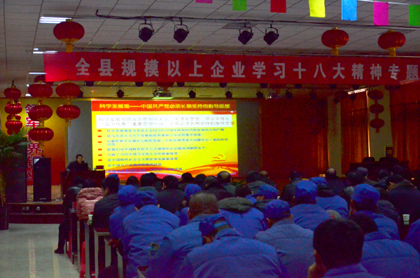2013年1月6日,中宁县规模以上企业学习十八大精神专题报告会在宁夏天元锰业集团公司职工培训中心举行,与会的有宁夏天元锰业集团公司、早康枸杞公司等在内的十几家企业的中层以上领导以及我公司的党员员工代表共六百多人,中宁县县委宣传部副部长担任本次报告会的主要讲师。