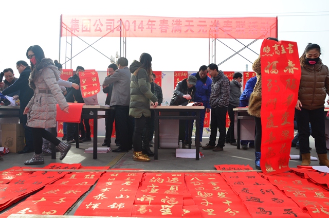 “辞旧岁满户春光纳千祥,迎马年开门大吉接百福”。1月23日,农历腊月二十三,是传统的小年。上午11点,公司办公楼前人头攒动,热闹非凡,活动现场挤满了前来围观的职工。这是公司宣传文化部组织公司书法爱好者开展的“迎新春﹒送春联”活动现场,来自宣传文化部和车间的5位书法爱好者冒着严寒,现场为大家书写春联,为节日营造了良好的喜庆氛围,受到广大职工的好评。