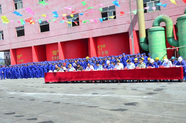 5月27日上午10时30分许,宁夏天元锰业有限公司2014年消防、高空坠落应急演练在锰一厂球磨二车间南侧举行。中宁县安监局安委会、质监局、工业商务局、县消防大队、工业园区管委会相关领导出席了此次活动,金属锰一厂总经理李建忠以及公司相关领导和数百名员工到现场观摩了本次演练活动。