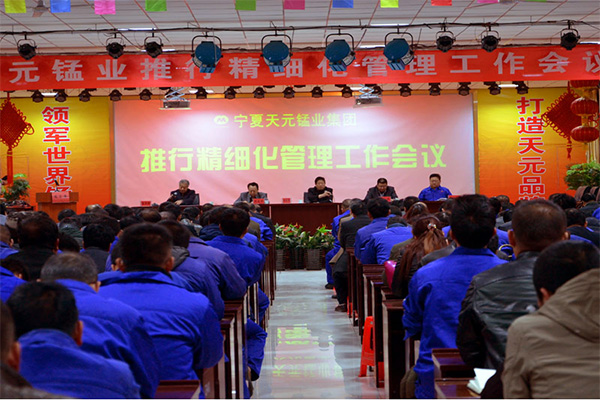 3月3日晚19:00点,集团公司在职工培训中心召开了2015年推行精细化管理工作会议,会议由集团公司副总经理高学祥主持,集团常务副总经理杨正有、金属锰二厂总经理王凯、集团行政部部长李全安等领导分别作了发言。
