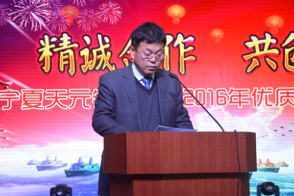 东普荣在致辞中指出,在长期合作中,我集团与供应商已结成利益共同体。2017年,我集团将成立宁夏天元物资有限公司,面对今后广阔的发展前景,将从简化合同的执行与物资结算流程,方便对账、挂账等事宜,保证与供应商合作期间的账目清晰;逐步建立和完善供应链管理体系,评选合格供应商;进一步优化与供应商的货款结算方式;加大寄存物资的供货模式;建立相互信赖、正常运行的合作机制五个方面营造出规范有序、风清气正、友好互利的合作氛围,确保双方诚信合作,实现互利共赢。