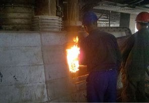 2011年5月2日,在华夏特钢镍铁厂三号车间二层平台上举行了隆重的新炉点火烘炉仪式。上午11时整,伴随着隆隆的鞭炮声,两台630000吨大型镍铁炉同时被点起。 1 号镍铁炉点火(裴晓斐摄...