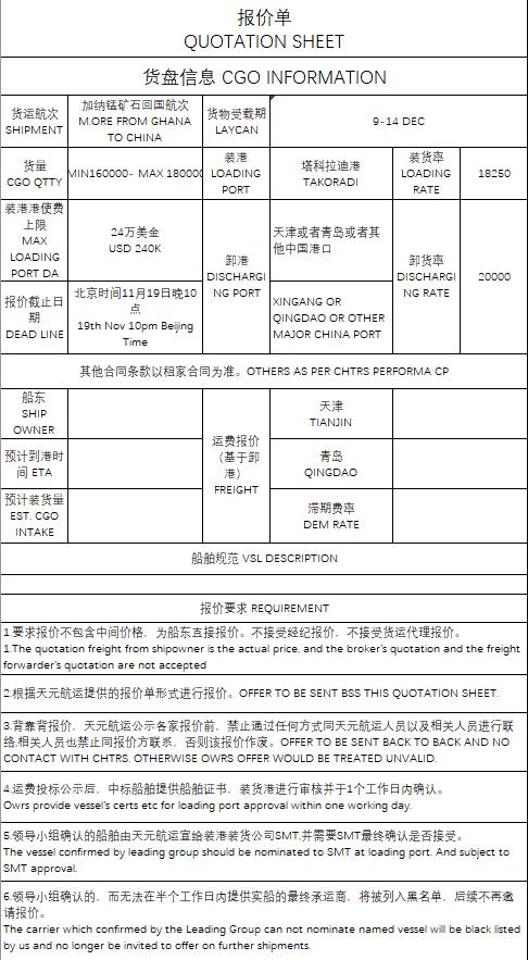 INVITATION LETTER FOR FREIGHT QUOTATION FOR MANGANESE ORE FROM GHANA TO CHINA